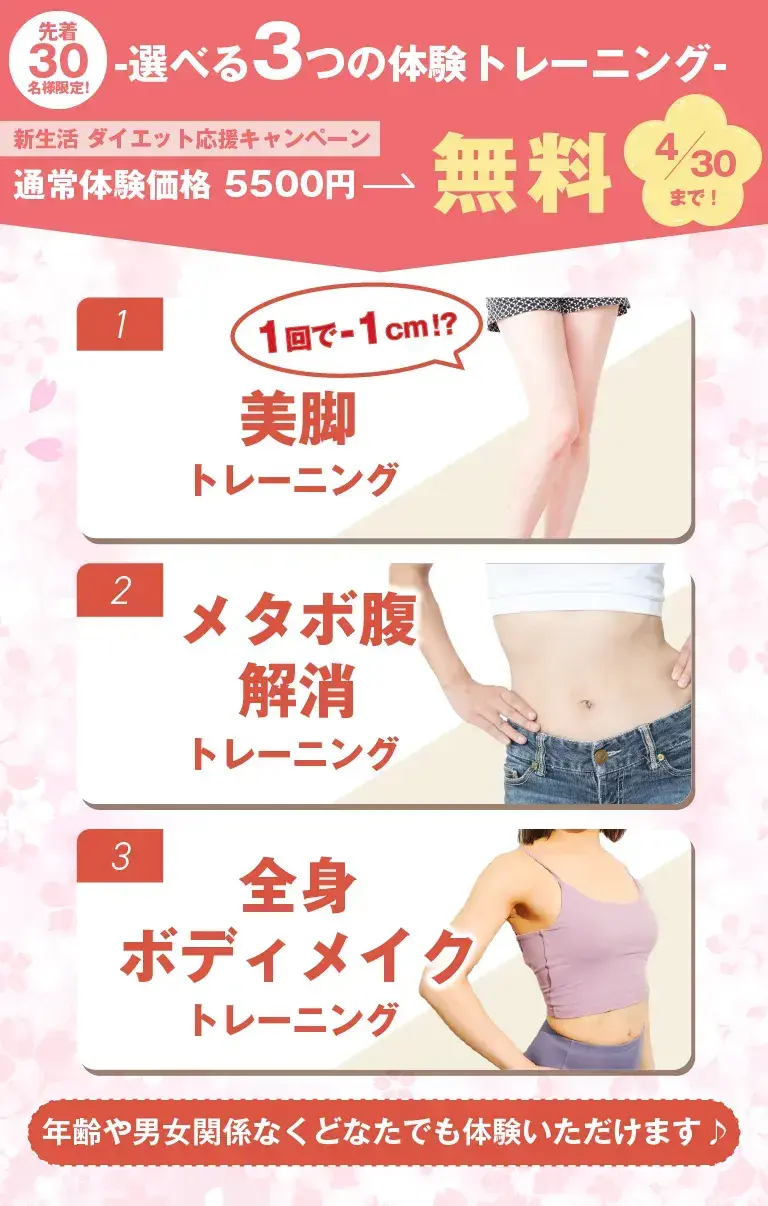 ご希望の場合、目的別に体験トレーニングを実施しておりますのでお気軽にお問合せください♪