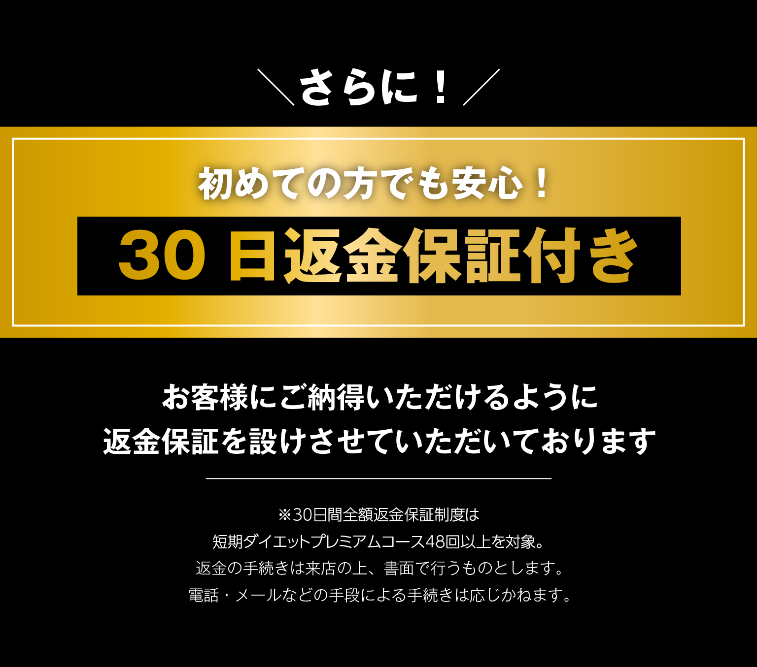 Ratは独自の挫折しずらいトレーニングプログラムのため、95.2%のお客様に継続して通って頂けています。万が一、トレーニングや食事方法が合わない場合は30日間の全額返金保証制度があるため安心してご利用頂けます!まずは無料で見学やダイエットのアドバイスをさせて頂きますので、気軽に無料カウンセリングにお越し頂けますと嬉しく思います♪